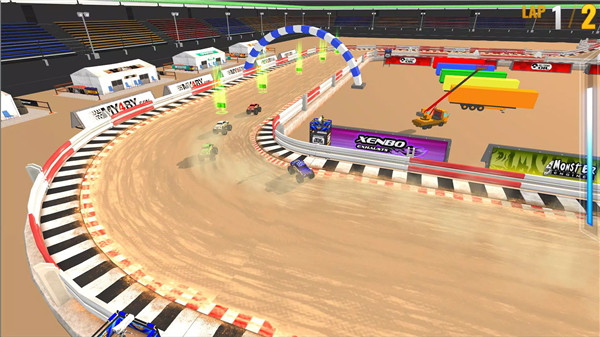 The game focuses on offroad monster truck racing across mud, sand, snow, and tarmac surfaces.