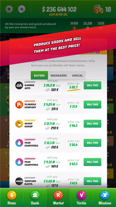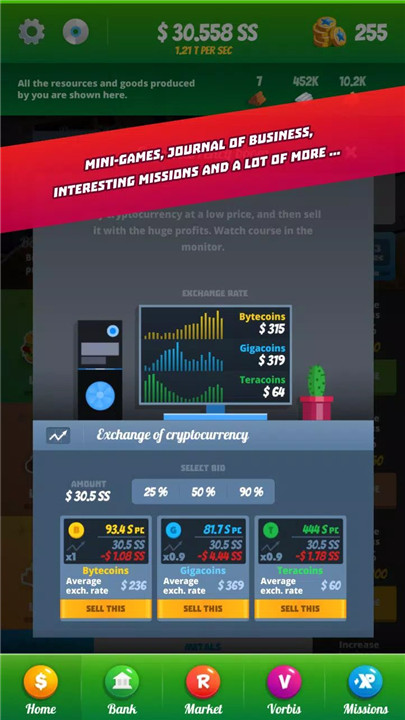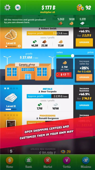 Track your progress and compare your success with top entrepreneurs through the fictional “Vorbis” magazine, adding a competitive edge and immersion to your capitalist journey.