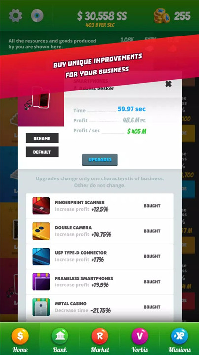 Need a boost? Take loans from the in-game bank to rapidly upgrade your businesses. Use this smart financial tool to outpace competitors and accelerate your empire’s growth.