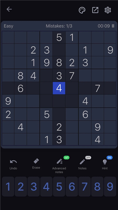 • Seamless Input: Streamline your gameplay with the number-first input method, allowing you to lock a digit and fill multiple cells quickly.