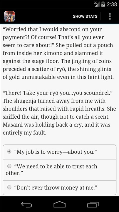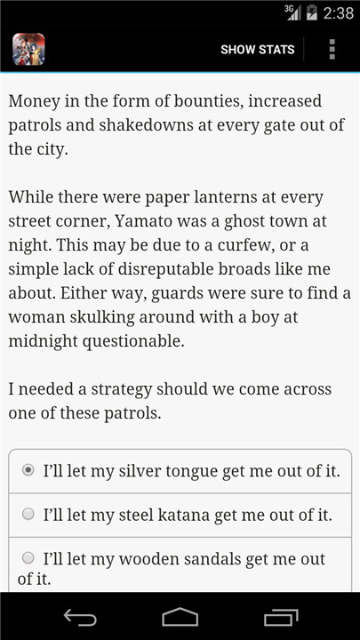 With over 140,000 words of interactive fiction, the story offers multiple branching paths and outcomes. Decisions impact relationships, fate, and the protagonist’s personal code, resulting in a highly replayable experience where every choice matters.