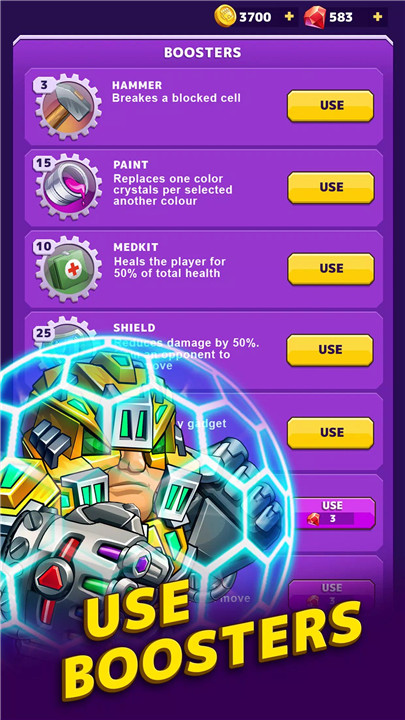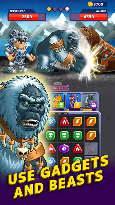The game includes a vast collection of customizable equipment. Players can upgrade gloves, armor, and gadgets to enhance their hero’s strength and unlock new fighting possibilities during puzzle combat.