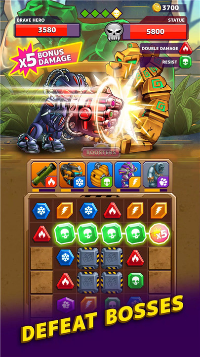 Players match tiles to charge their hero’s punching gloves, then use those charges to unleash powerful strikes during 1v1 fights and boss encounters.