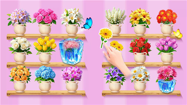 Organize messy flowers into pots and create stunning bouquets. Drag and drop flowers into pots, then match three identical flowers to eliminate them. Each pot can hold up to three flowers, and new flowers appear after finishing your arrangements. Quick thinking and strategy are key to completing levels within the time limit.