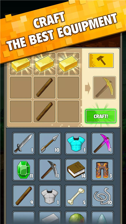 In addition to mining, players can craft equipment, complete quests, build a village, and collect rewards from treasure chests.