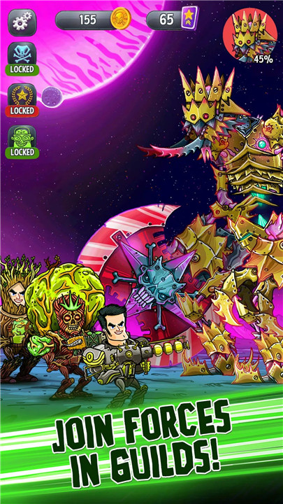 Strength lies in numbers! Create or join a guild to take on MEGA bosses and complete challenges together. Teamwork and strategy are key to conquering the galaxy’s toughest foes and earning rare loot and bragging rights.