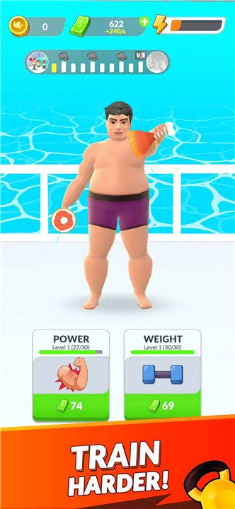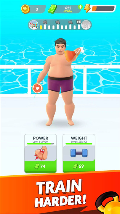 Idle Gym Life 3D features a standout evolution mechanic where physical changes are clearly reflected in the character’s appearance. As exercises are completed and strength increases, fat is reduced and muscle mass grows. The transformation unfolds step by step, highlighting progress and reinforcing long-term goals on the path to becoming the strongest man.